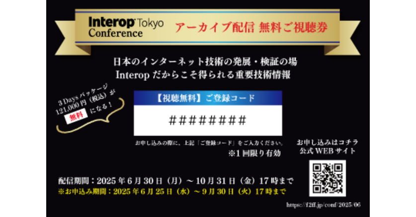 と「Interopカンファレンス2025 アーカイブ配信10%OFF券」プレゼントします。